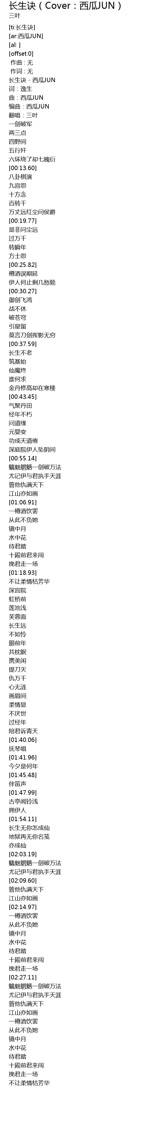 | [00:00.10] | 长生诀 - 西瓜JUN |