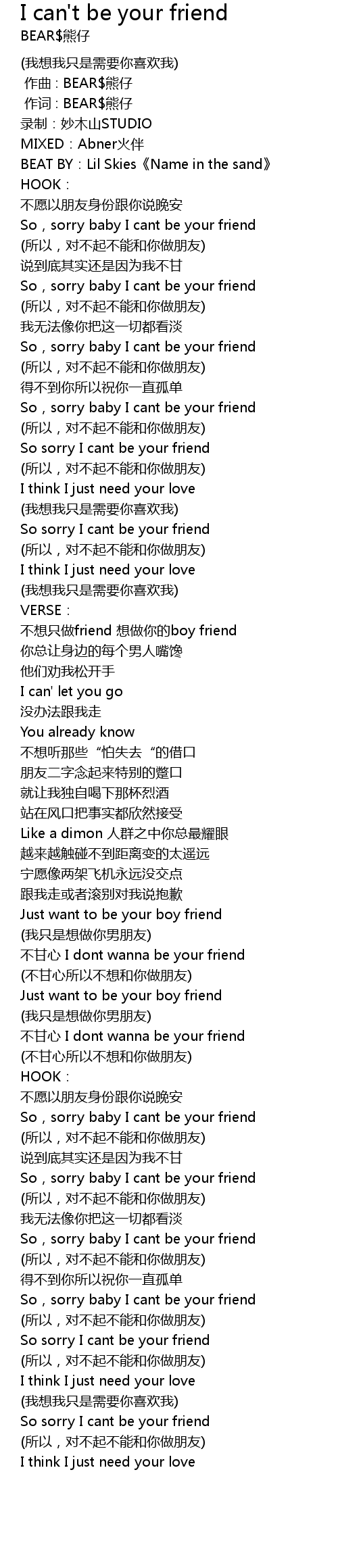 | [00:17.454] | So, sorry baby I cant be your friend |