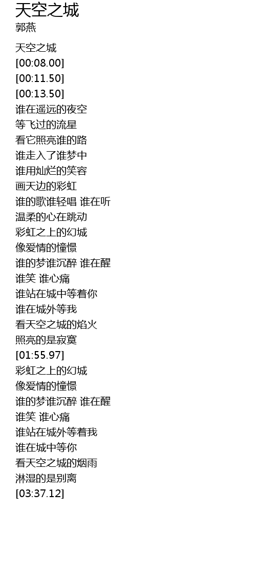 | [01:37.19] | shuí zài chéng wài děng wǒ |