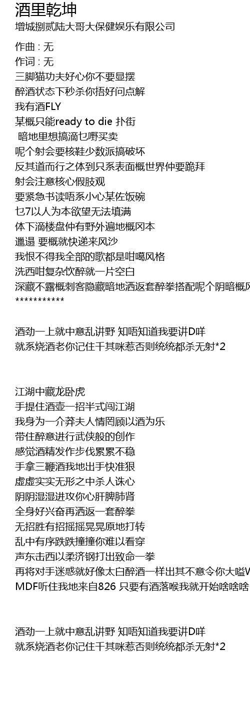 | 我身为一介莽夫人情罔顾以酒为乐 | |