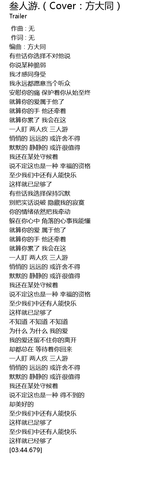 | [00:52.192] | 一人盯 两人疚 三人游 |