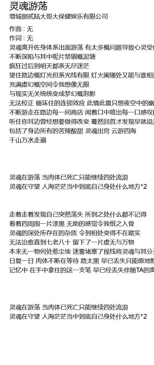 | 灵魂离开佐身体系出面游荡 有太多概问题导致心灵受创 | |