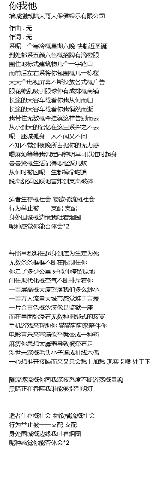 | 呢一座城孤身一人不闻又不问 不知不觉到夜晚所占据你的无力感 | |