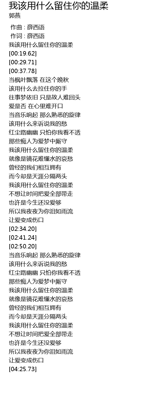 | [03:51.84] | 我该用什么留住你的温柔 |