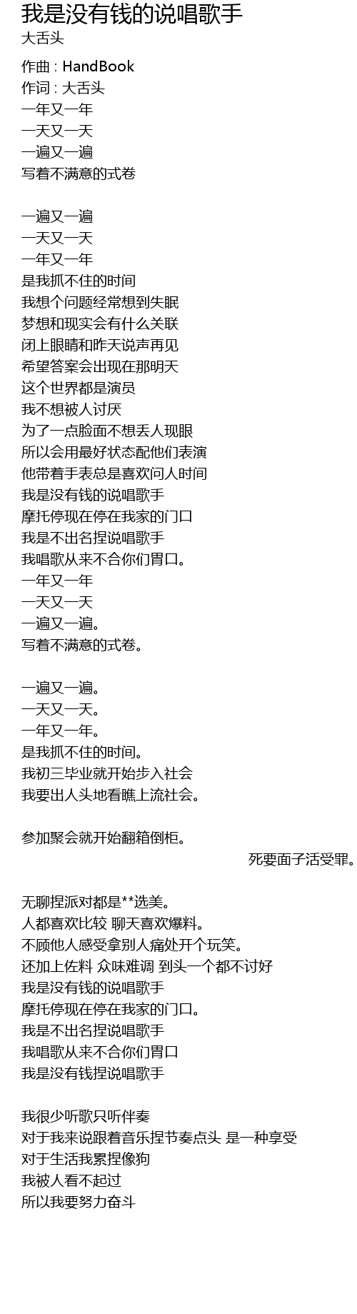 | 我是没有钱捏说唱歌手 | |