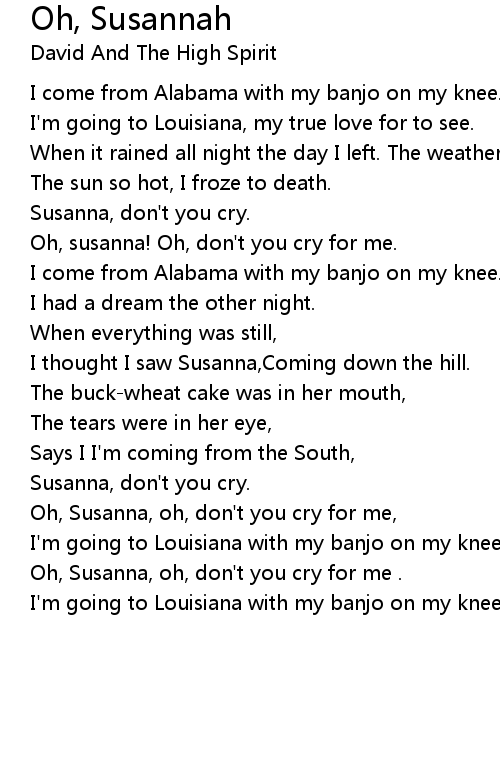 Oh, Susanna, oh, don't you cry for me . |