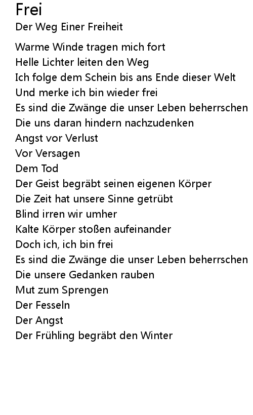 | Doch ich, ich bin frei | |