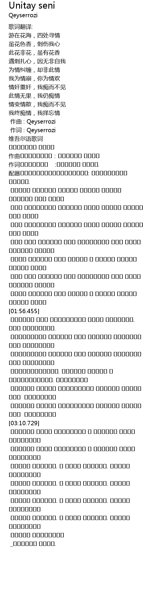 | [00:22.935] | 作曲مۇزىكىسى:قەيسەر روزى |