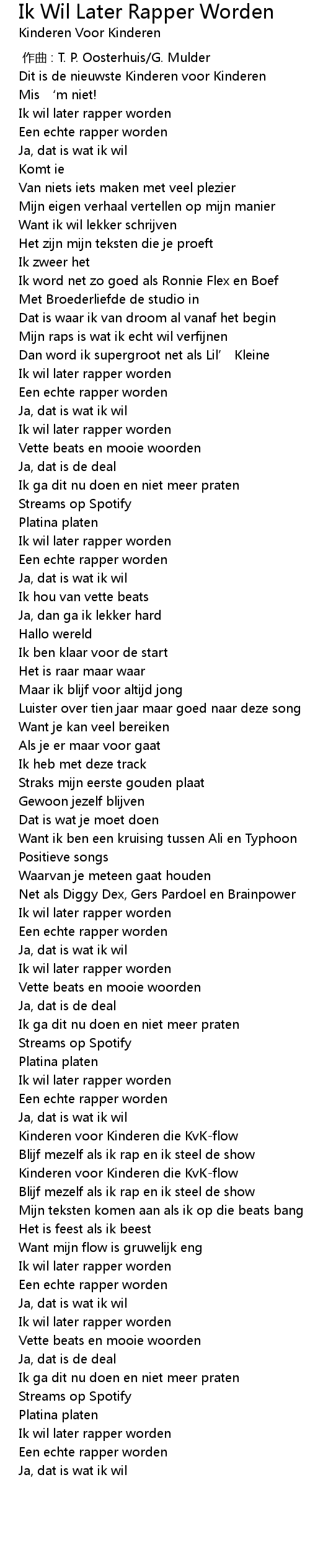 | [00:28.64] | Mijn raps is wat ik echt wil verfijnen |