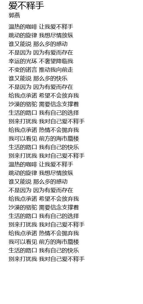 | [00:21.72] | wēn rè de kā fēi ràng wǒ ài bù shì shǒu |