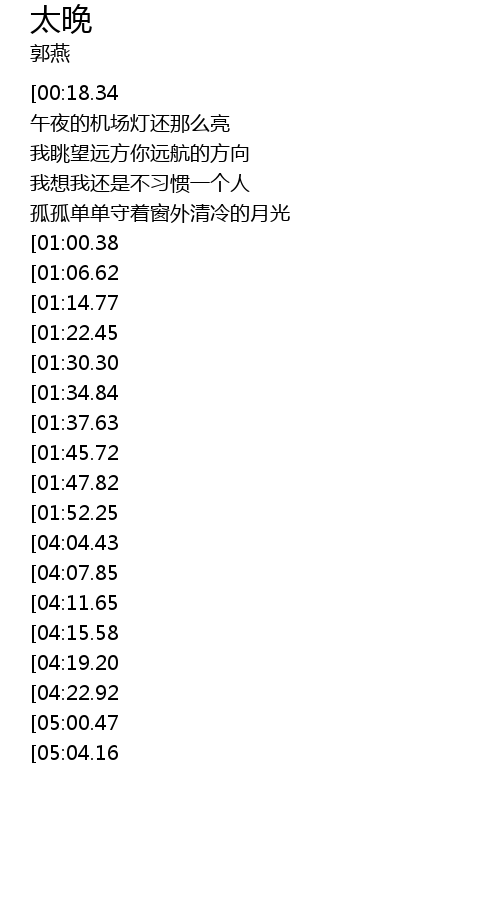 | [03:55.96][01:52.25] | 才明白这一切都已经太晚 |
