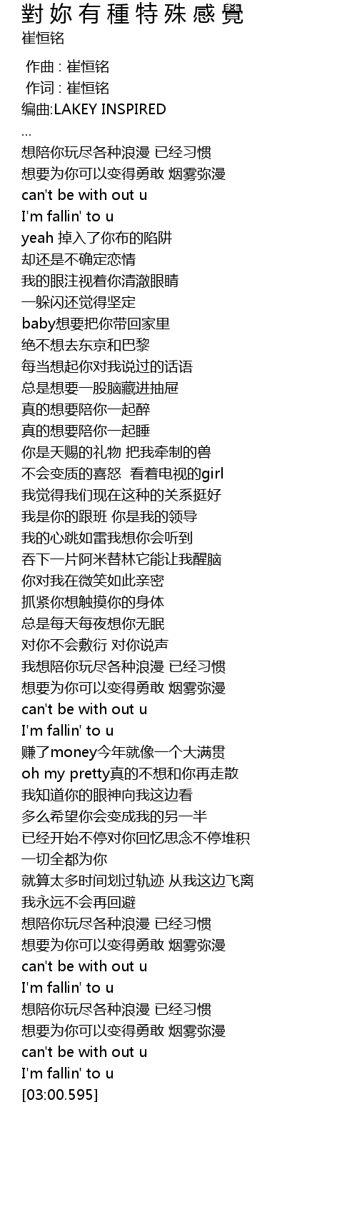 | Song | 對 妳 有 種 特 殊 感 覺 |