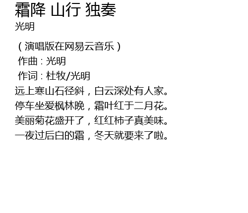| [00:49.000] | 停车坐爱枫林晚,霜叶红于二月花。 |