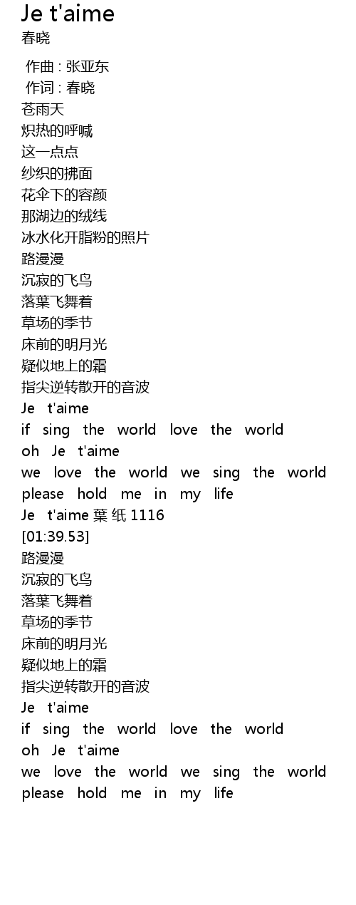 | [01:30.56] | Je t' aime ye zhi 1116 |