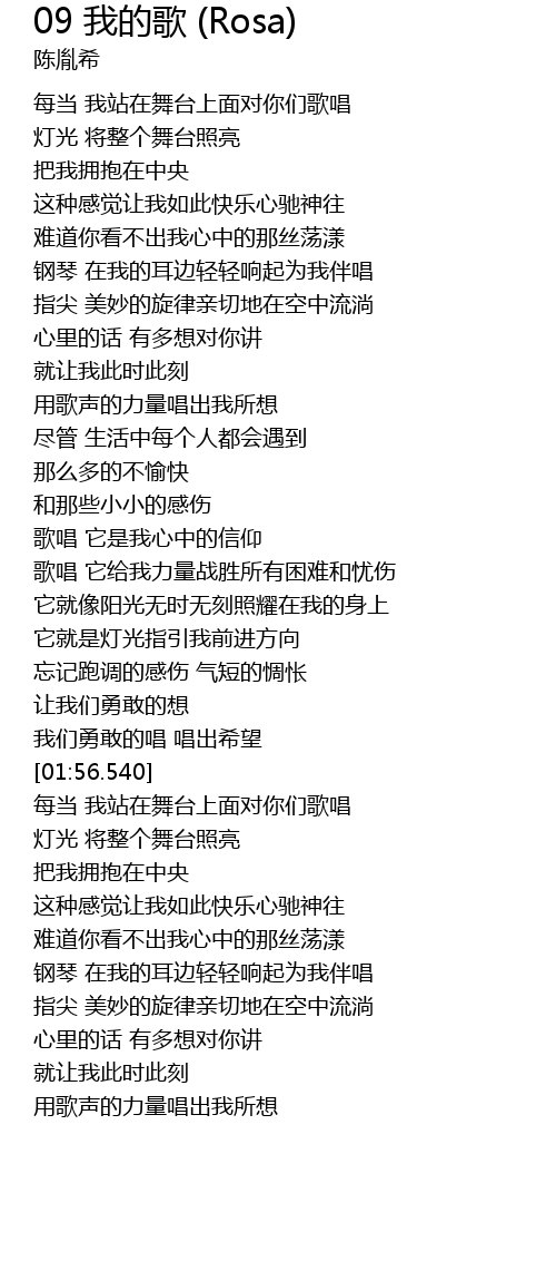 | [03:58.710] | 用歌声的力量唱出我所想 |