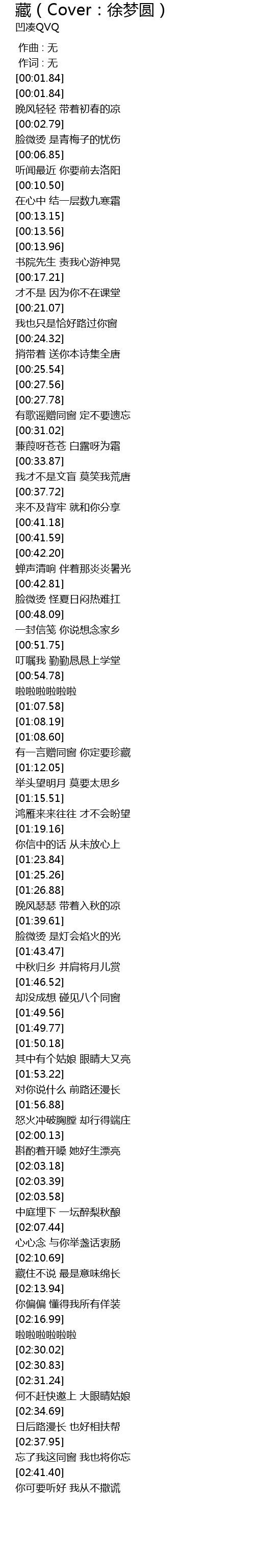 | [01:39.82] | 脸微烫 是灯会焰火的光 |