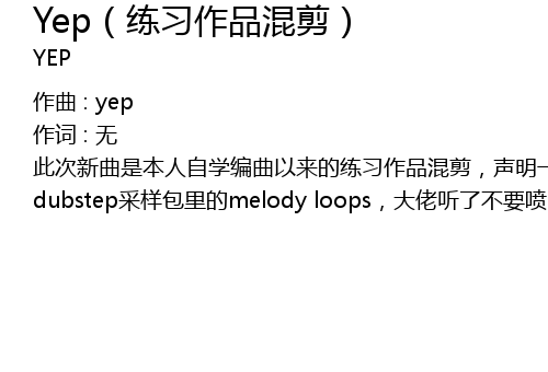 | cǐ cì xīn qǔ shì běn rén zì xué biān qǔ yǐ lái de liàn xí zuò pǐn hùn jiǎn, shēng míng yī xià, dì èr duàn qǔ zi shì yòng le melodic dubstep cǎi yàng bāo lǐ de melody loops, dà lǎo tīng liǎo bù yào pēn. |