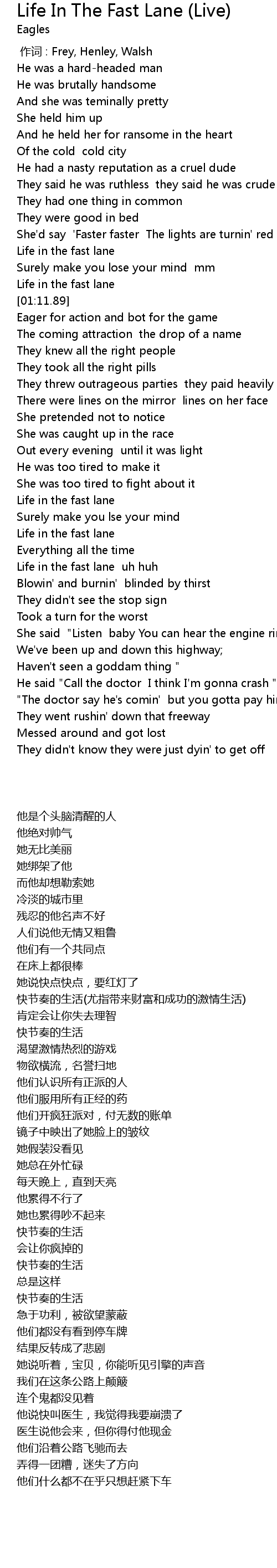 | [01:51.89] | Life in the fast lane |