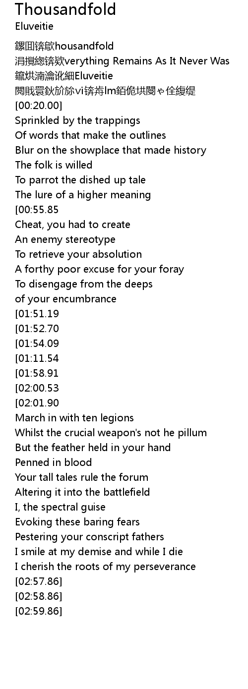 | [00:10.00] | 鑹烘湳瀹讹細Eluveitie |