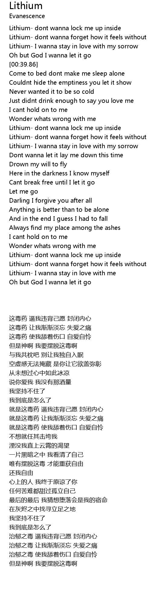[00:09.57] Lithium- dont wanna forget how it feels without
