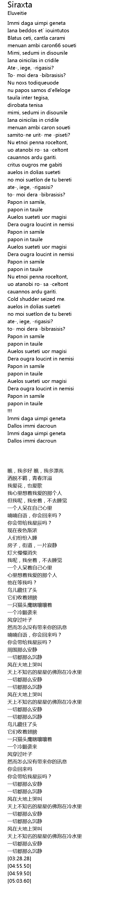 | [01:56.00] | Dera ougra loucint in nemisi |