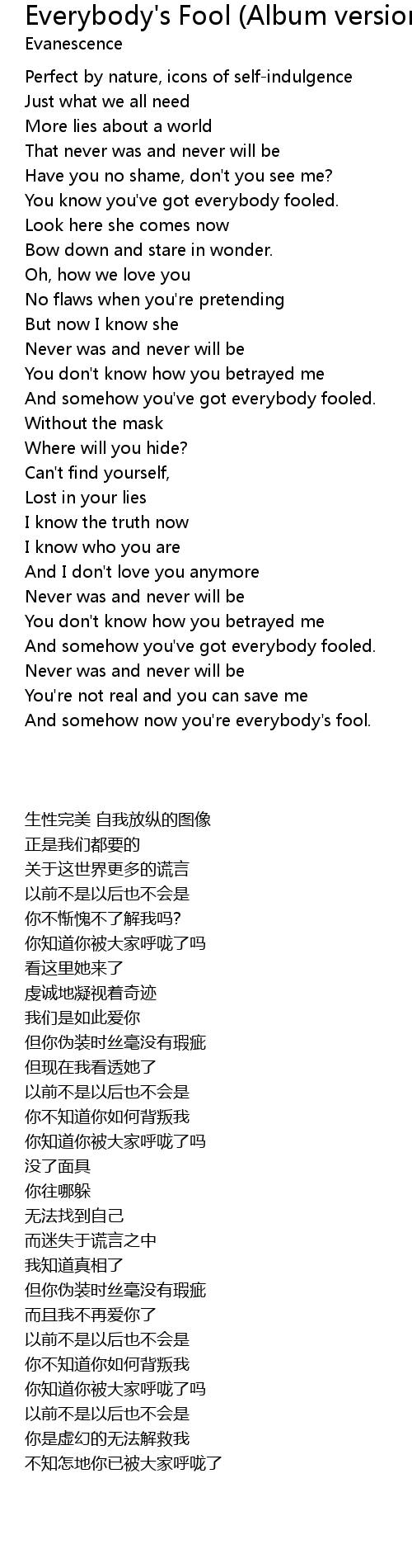 And somehow now you're everybody's fool. |