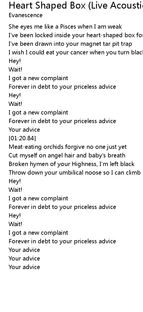 [00:20.78] I've been locked inside your heart-shaped box for weeks