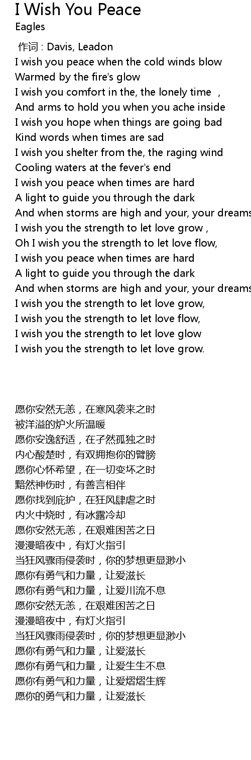 | [00:17.68] | I wish you peace when the cold winds blow |