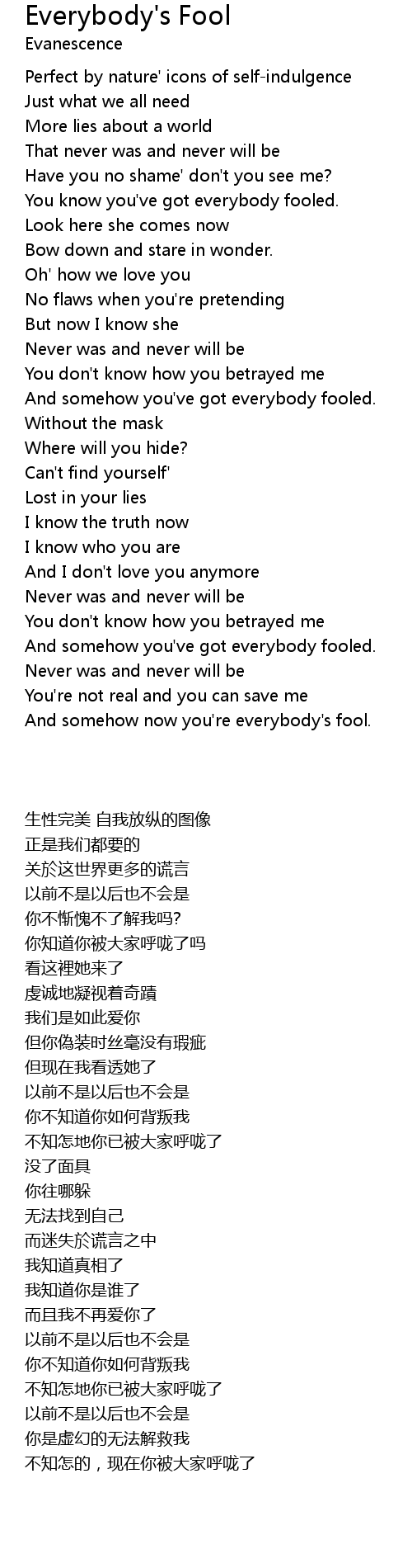 And somehow now you're everybody's fool. |