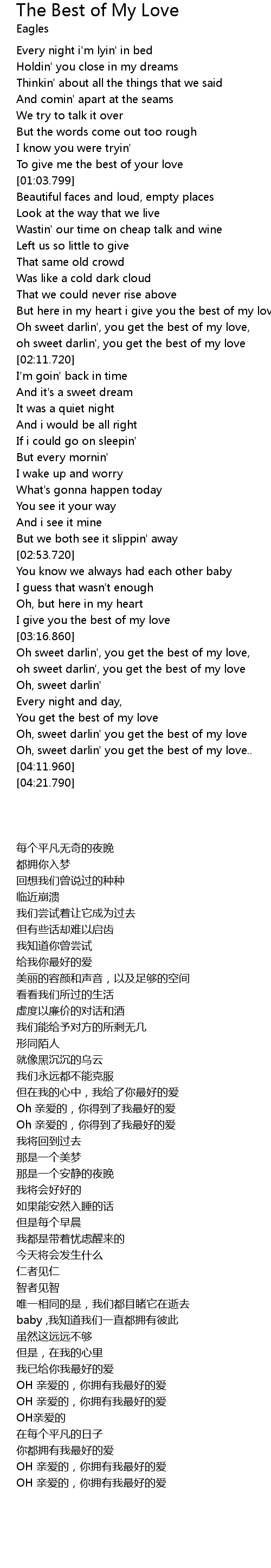 | [03:19.200] | Oh sweet darlin', you get the best of my love, |