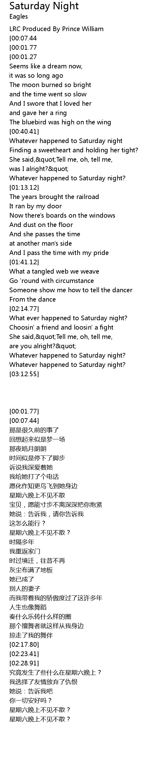 | [02:28.91][00:01.77] | Eagles-Saturday Night |