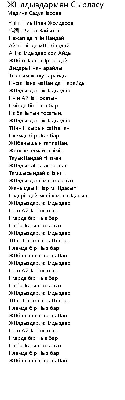 | [00:00.000] | 作曲 : Ұлықпан Жолдасов |