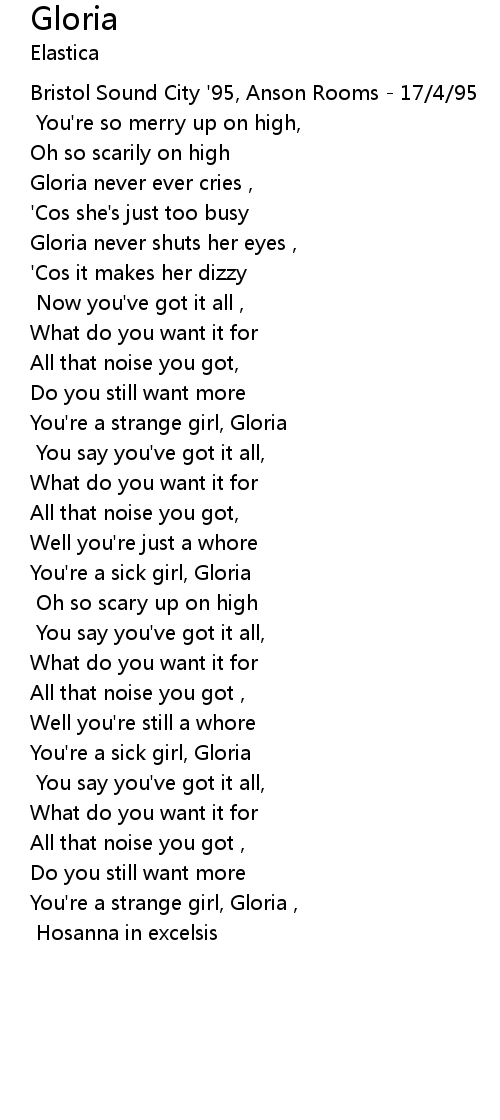 | You're a strange girl, Gloria , | |
