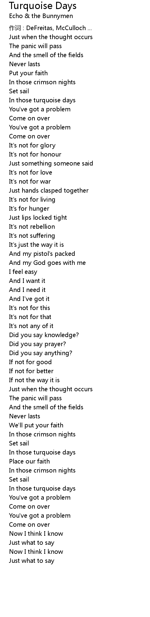 | 作词 : DeFreitas, McCulloch ... | |