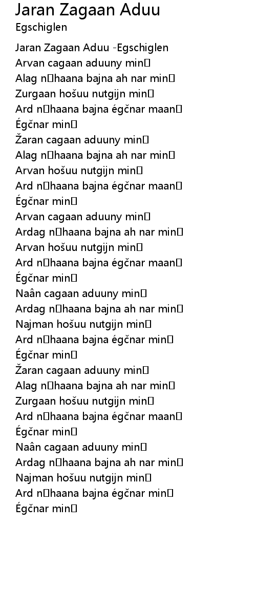 | [00:00.00] | Jaran Zagaan Aduu Egschiglen |