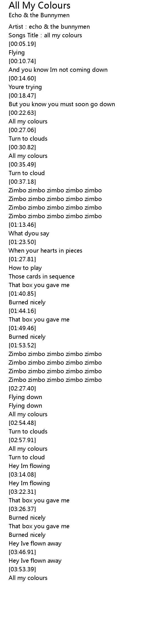 | [01:09.90] | Zimbo zimbo zimbo zimbo zimbo |