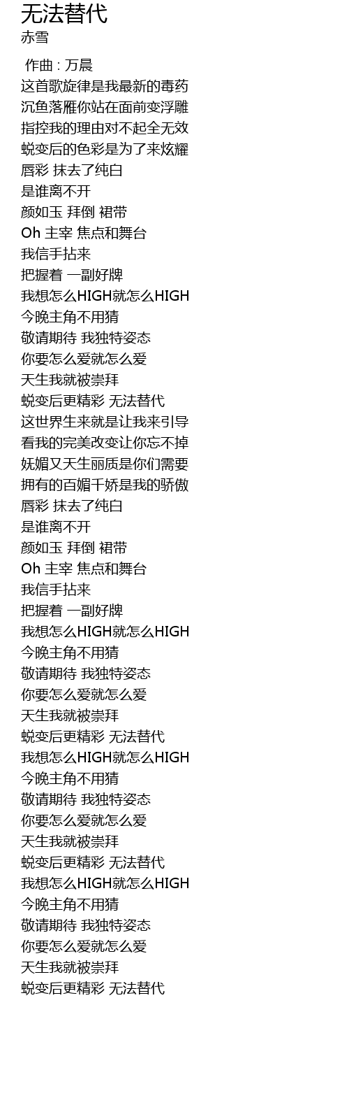 | [02:23.52] | 蜕变后更精彩 无法替代 |