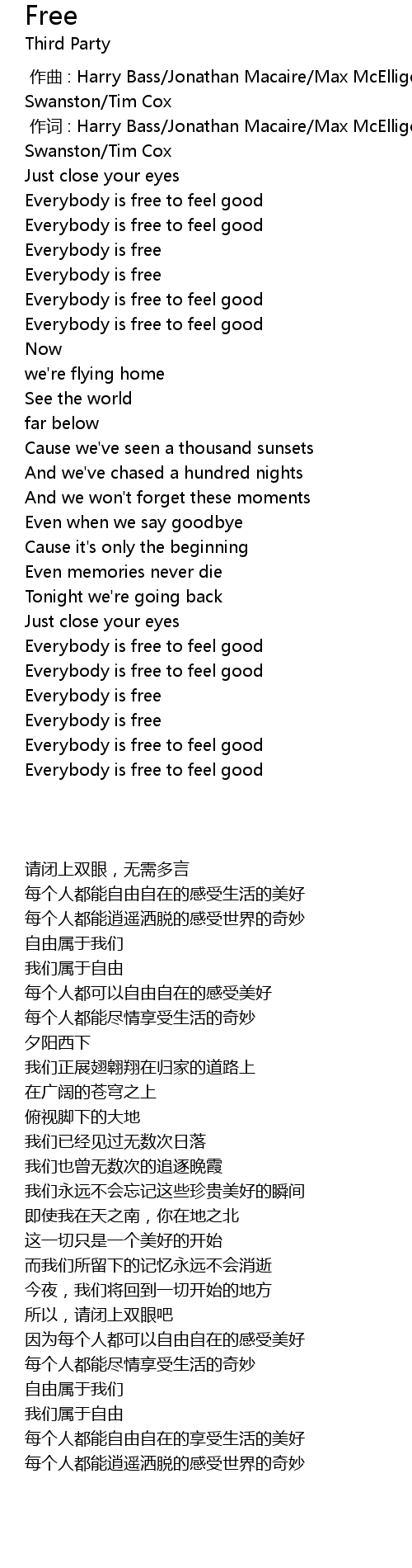 | [00:15.448] | Everybody is free to feel good |