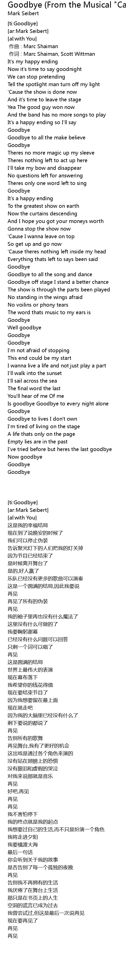 | [01:43.07] | Goodbye off stage I stand a better chance |
