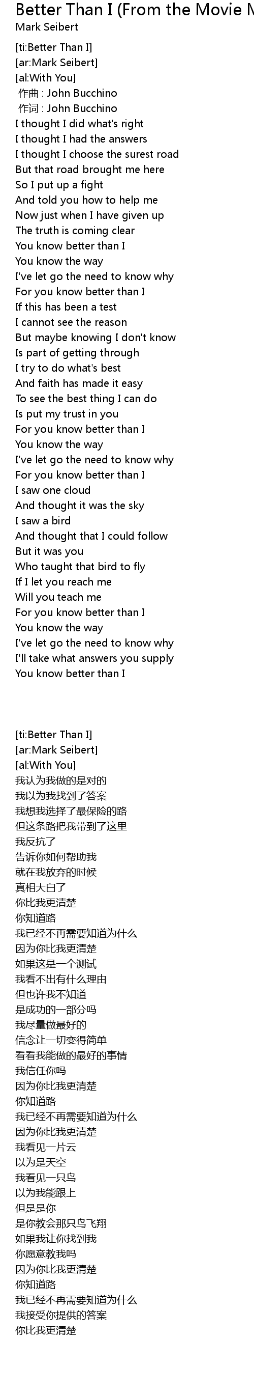 | Song | Better Than I (From the Movie Musical "Joseph - King of Dreams") |