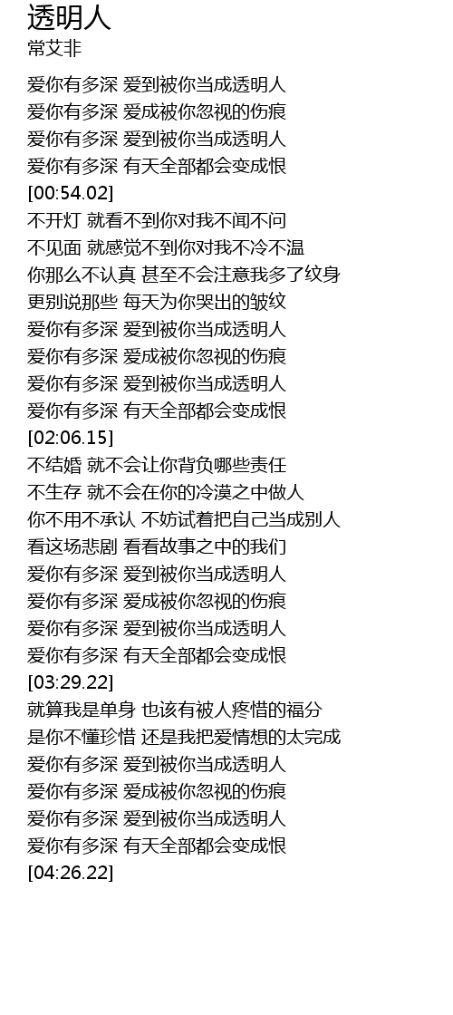 | [04:04.51] | 爱你有多深 爱到被你当成透明人 |