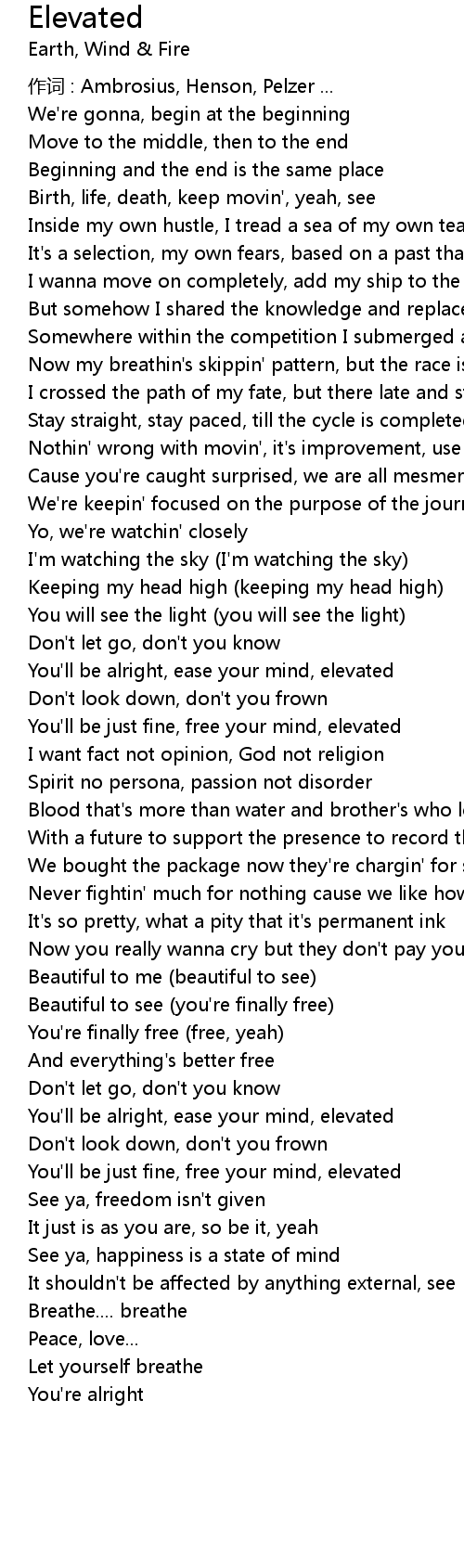 | You' ll be alright, ease your mind, elevated | |