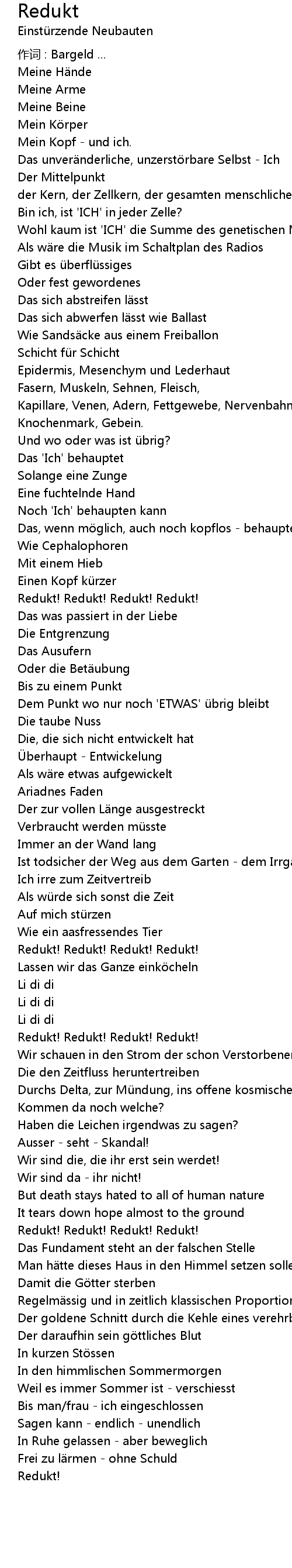 | 作词 : Bargeld ... | |