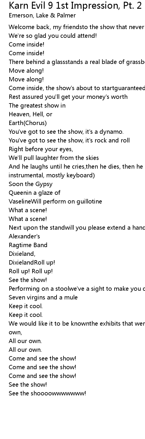 Welcome back, my friendsto the show that never ends. |