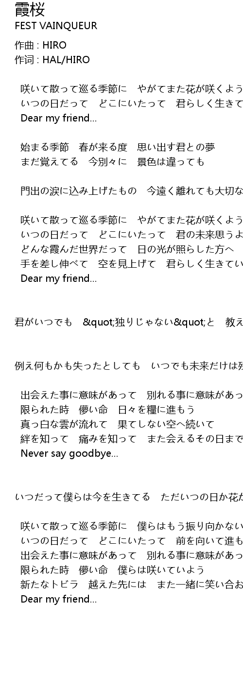 | 手を差し伸べて 空を見上げて 君らしく生きていて | |