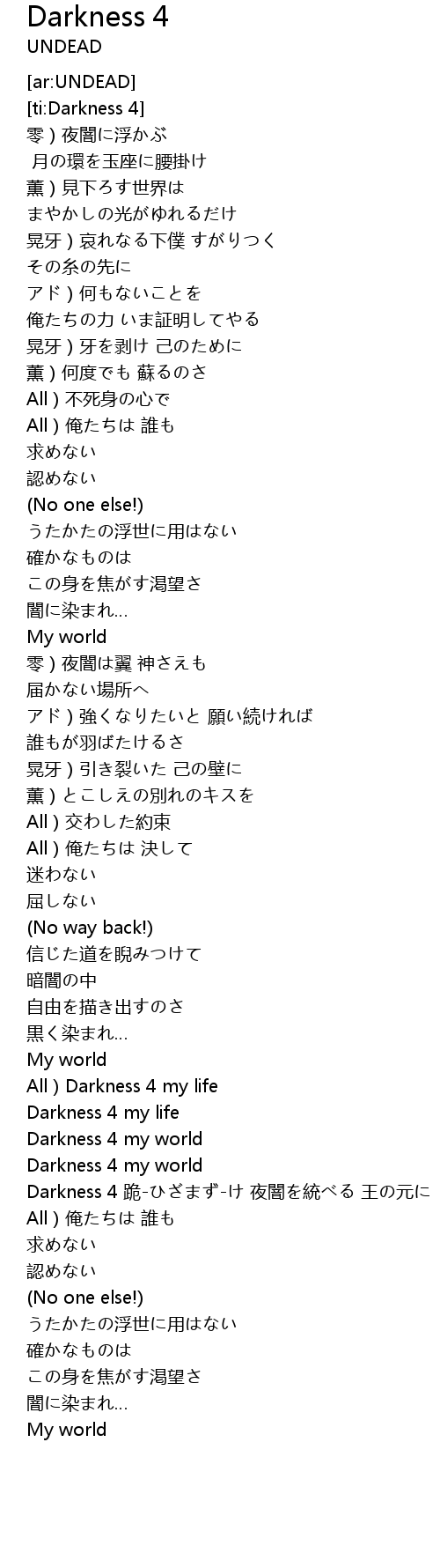 | [02:48.12] | Darkness 4 跪-ひざまず-け 夜闇を統べる 王の元に |