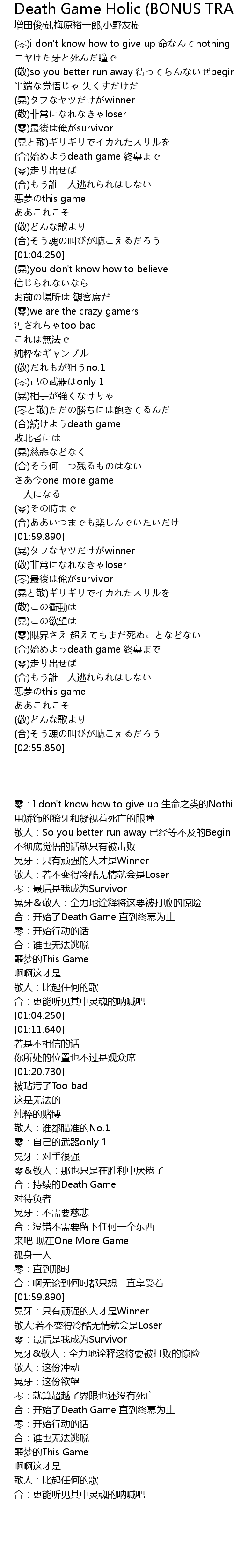 | [00:42.040] | hé shǐ death game zhōng mù |