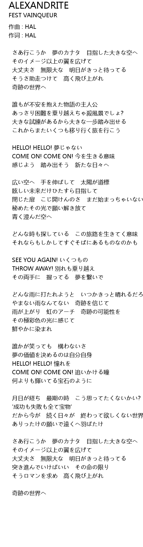 | 大丈夫さ 無限大な 明日がきっと待ってる | |