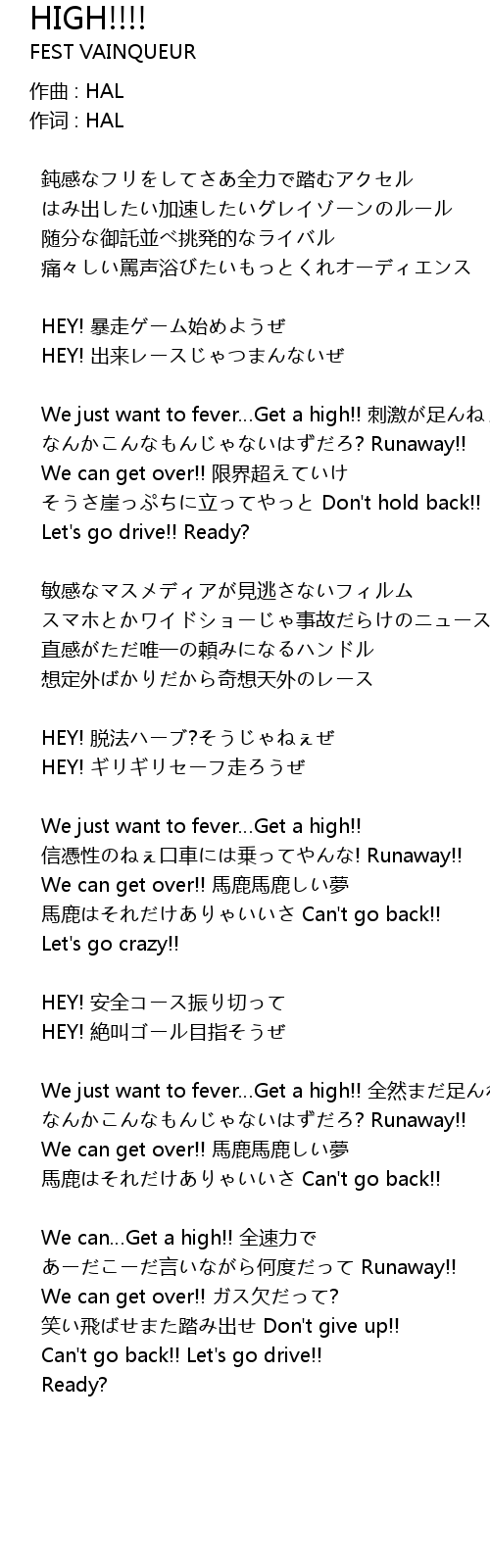 | We just want to fever…Get a high!! 全然まだ足んねぇ | |