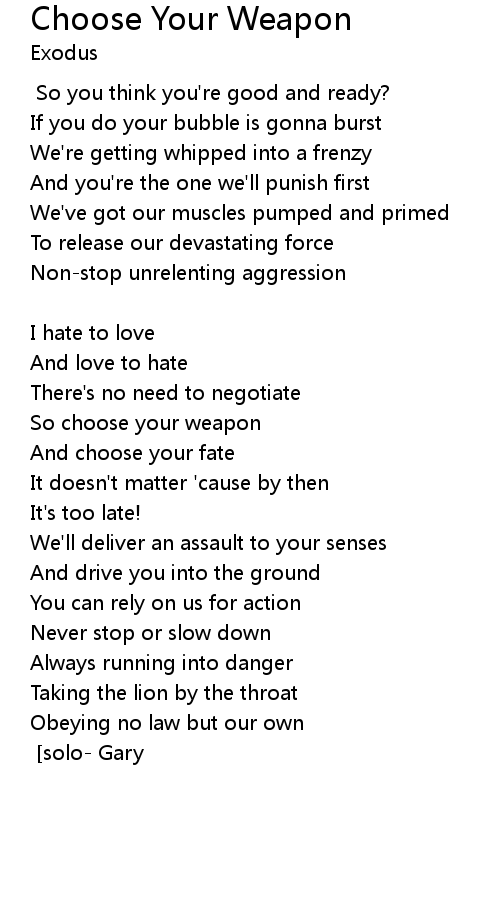 Violence is what we promote! [repeat chorus] [solo- Gary] [solo- Rick] |